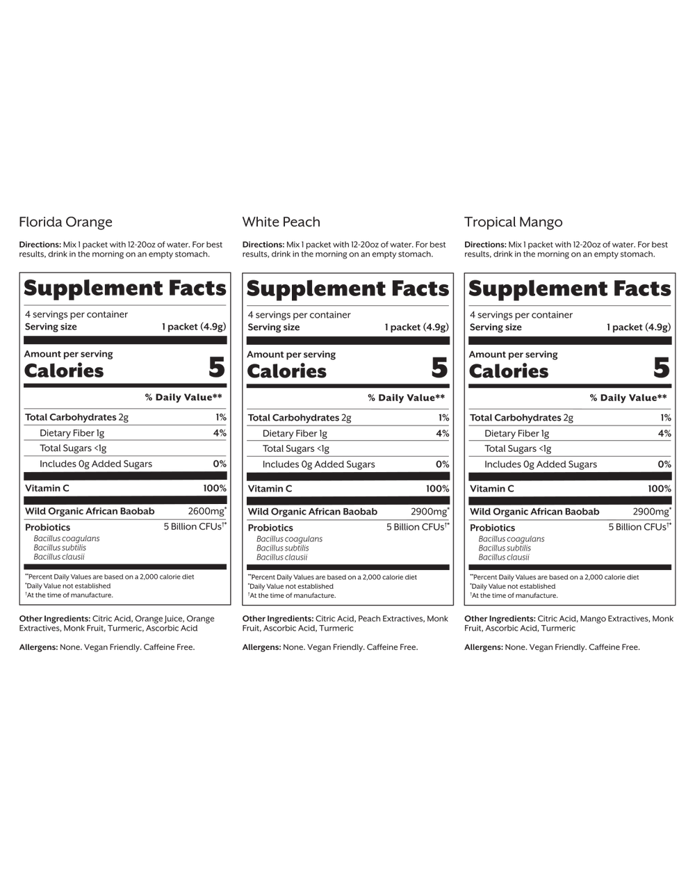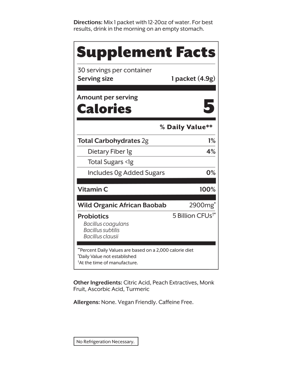Wild-harvested fiber & probiotics with African baobab and 5 billion active cultures.
